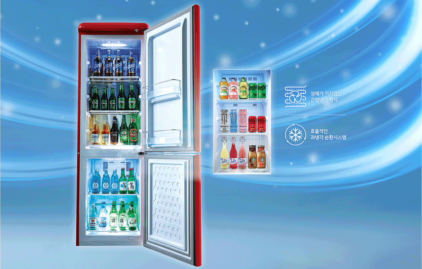 특허 받은 간접 냉각 방식으로 성에 없이 전기료 걱정 없는 기술력이기 때문에