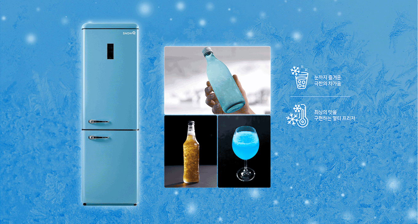 소주, 맥주, 물, 커피, 탄산음료 등을 눈꽃 입자로 만드는 혁신적인 제품입니다